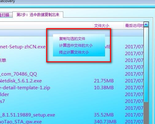 5、勾选需要恢复的文件,右击将文件复制出来。