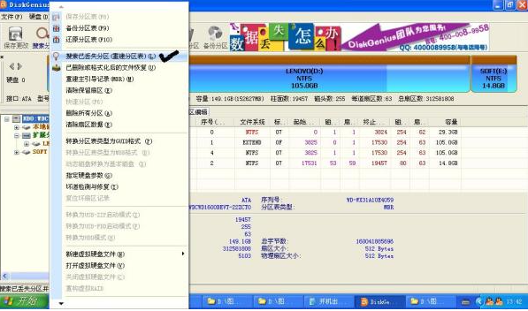 (1)由于重装系统时,破坏了硬盘的分区表记录,而导致分区丢失的现象。所以只能重建分区表,就可以修复,处理方法如下: