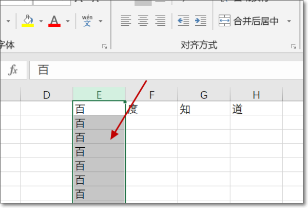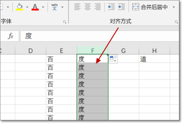 3、方法二,双击填充柄,可填充,如果相邻的前一列或后一列连续多行,则填充相同多行。