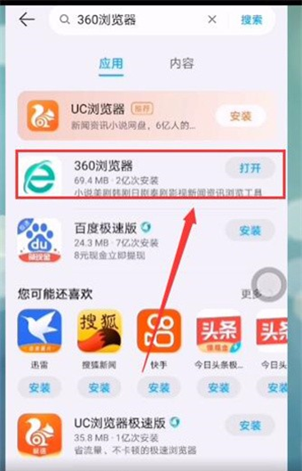 1、打开手机上的应用商城APP,下载360手机浏览器。