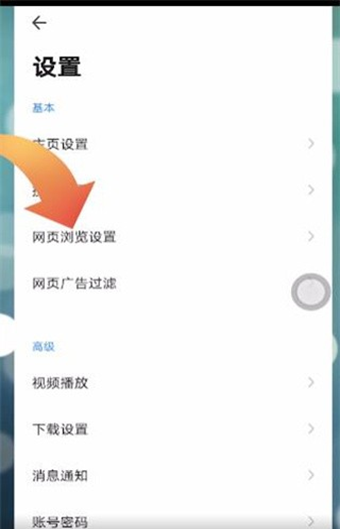 4、进入到设置界面后,点击界面中的【网页浏览设置】。