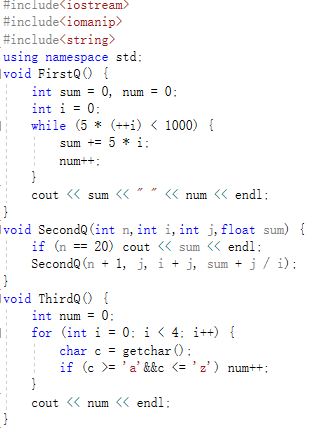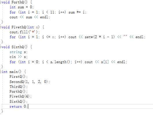 第一题(用数组编程)随机产生10个30~100(包括30,100)的正整数,求最大值,最小值,平均值,并显示整个数组的值和结果。 第二题(用数组编程)定义二维数组A[6][6],将其对角线元素全变为0,并以矩阵形式输出数组。 第三题(用函数编程)编写函数,完成一维数组A[6]和B[6]对应元素相加到C[6],然后在主函数输出C[6]. 第四题(用函数编程)编写递归函数fun计算n!,实现1+2!+...+8!. 第五题(用函数编程)使用静态变量定义编写函数,在主函数实现1!+2!+3!+...+8!. 第六题(无要求)输入一个正整数n,再输入n个学生的信息(姓名,高数,英语),输出每个学生的姓初学者请教 两道简单的c语言编程题目