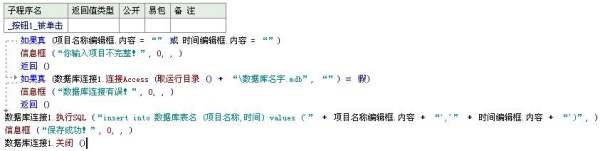 .如果真 (项目名称编辑框.内容 = “” 或 时间编辑框.内容 = “”)