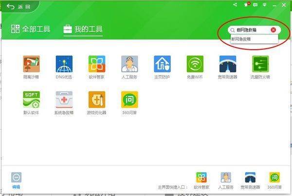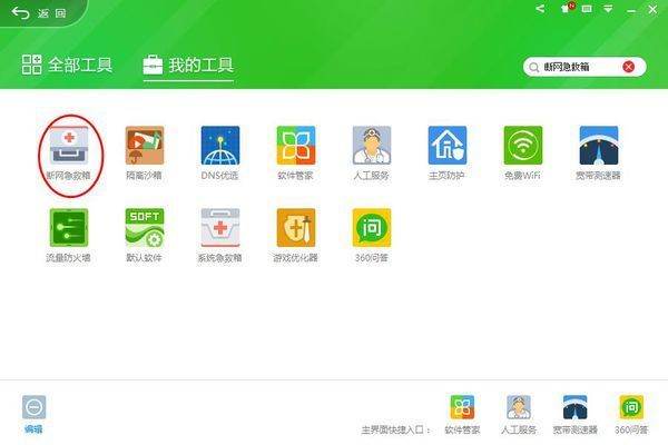 360断网急救箱是一款360官方出品的断网急救工具。如果你的电脑出现无法上网的话可以试试这个软件,360断网急救箱位置: