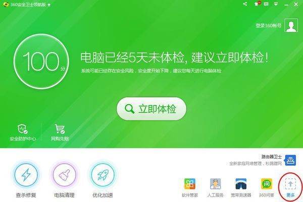 1. 首先打开360安全卫士(如果没下载的话,需要先下载一个)选择“更多”