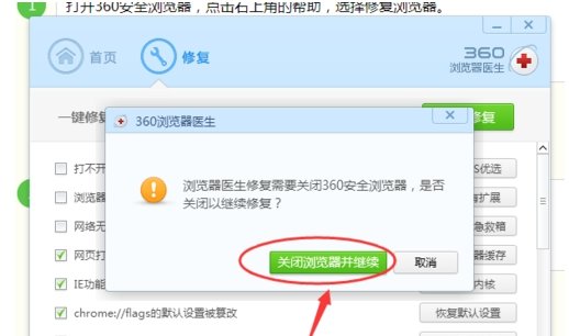 3、修复前需要关闭浏览器,请保存好自己的工作。