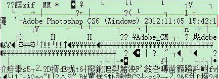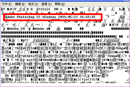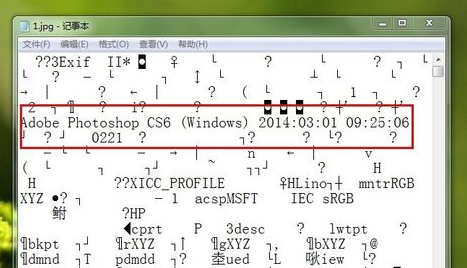 2、通过记事本打开图片,如果这张照片用photoshop处理过,它会在里面显示photoshop的版本号,就像这样。