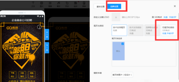 8、单击“品牌设置”选项,然后单击右下方的“无尾页和底标”选项