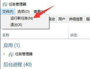 3、弹出的任务管理器后,我们点击文件选项,打开 运行新任务。