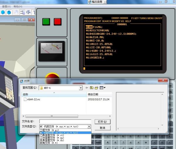文件----打开(注意选择NC代码文件)还有就是文件后缀名,一般为NC.cnc.txt发那科