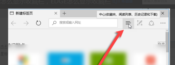1,在Edge浏览器右上角有个三横标记,这个叫做“中心”。里面包含收藏夹、阅读列表、历史记录和下载。