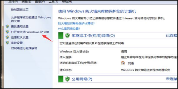 5、然后在来到的界面,点击左侧的【打开或关闭windows防火墙】,如图所示。