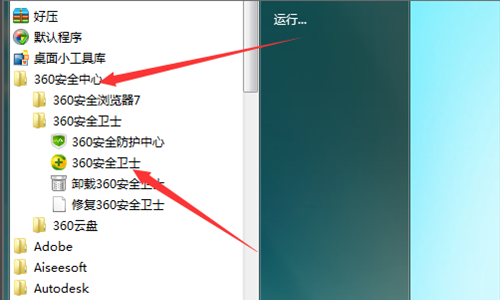 2、点击360安全中心之后,在此文件夹里面找到360安全卫士。