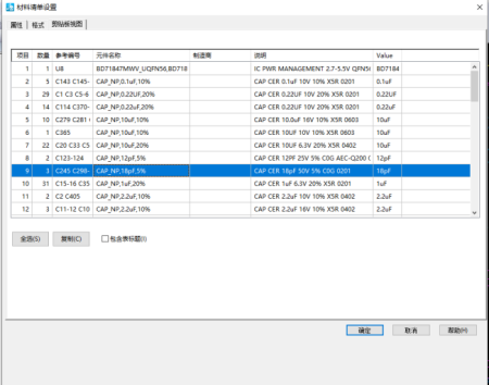 下面方式,文件菜单下---报告----材料清单。设置好格式。就能导出一个很好的元件清单了。