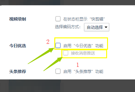 3、进入页面,取消勾选“今日优选”和“快资讯”的选项。