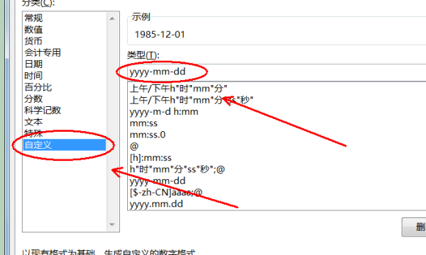 5、在“自定义”类型中输入“yyyy-mm-dd”即可。