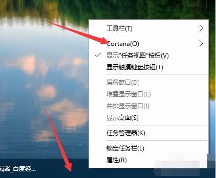在任务栏上点击右键,将鼠标移到“cortana"上。