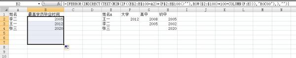 B2单元格输入公式=IFERROR(INDIRECT(TEXT(MIN(IF((E$2:E$100=A2)*(F$2:H$100<>""),ROW($2:$100)*100+COLUMN(F:H))),"R0C00"),),"")