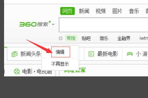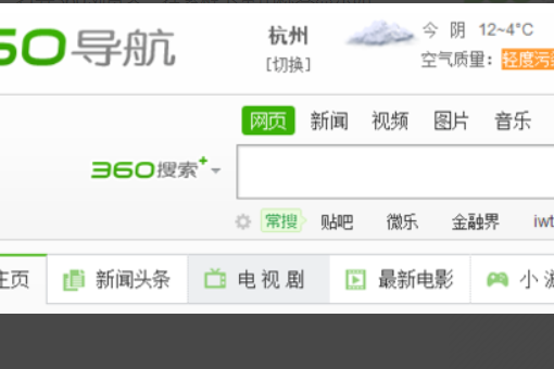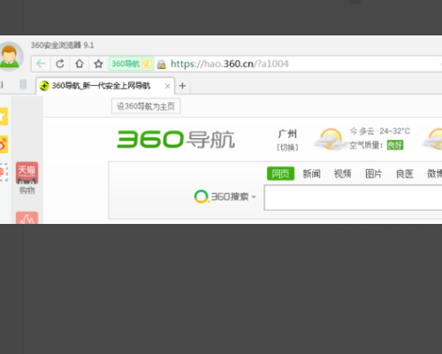 1、首先,打开360浏览器,搜索框下常用标签显示如下。