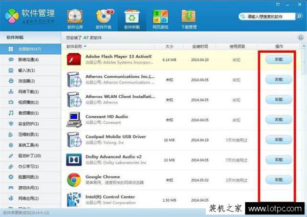 2、在软件管理的界面中,我们点击【软件卸载】选项,找到你需要卸载的软件或程序,直接点击卸载即可完全卸载。