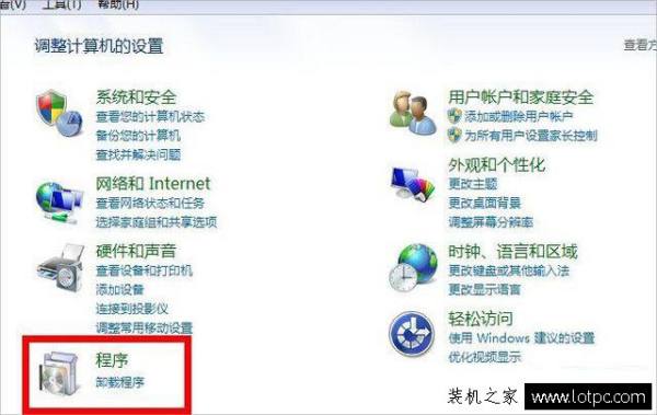 2,接着,在【控制面板】界面中点击【程序】选项。