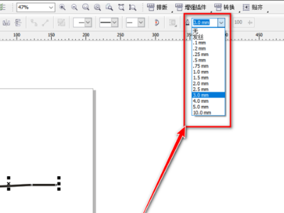 2、接下来需要选择上方钢笔图标下拉选项选择要更改的粗细。