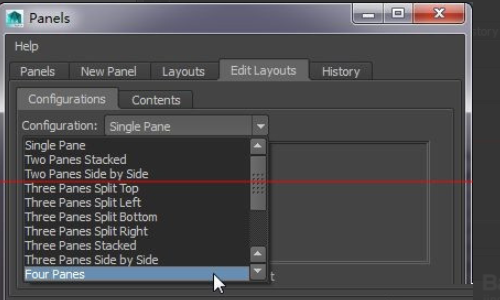 7、选择了3个视图显示后,在“contents”中可以分别选择一下自己想要的每个窗口中显示的内容。