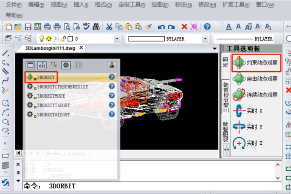 我们在命令行输入“3DORBIT”命令字符,,调用约束动态观察命令指示;