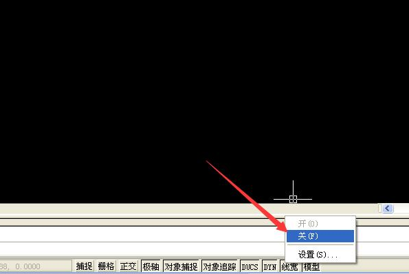 2、此时,在下面的工具栏中找到线宽工具,单击鼠标右键,然后在打开的列表中单击“关”,这样就可以关闭此功能,见下图。