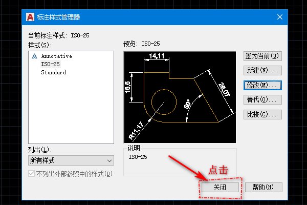 7、最后点击“关闭”,关闭标注样式管理器。