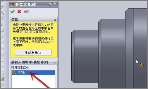 2、这时只要将鼠标指针停在屏幕上的任意一点,再点鼠标左键,则此第一个插入零件就变成了固定状态。