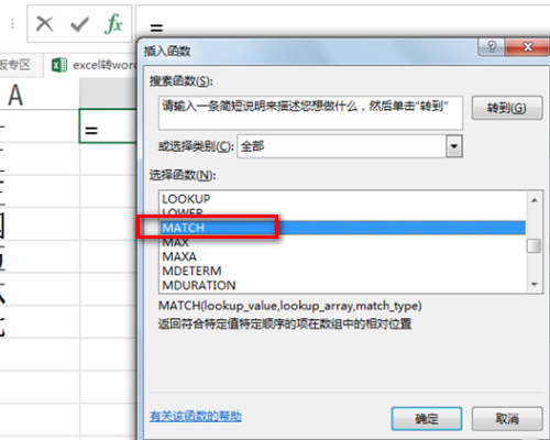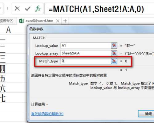 4、第三个参数match_type设置为0,点击确定按钮。