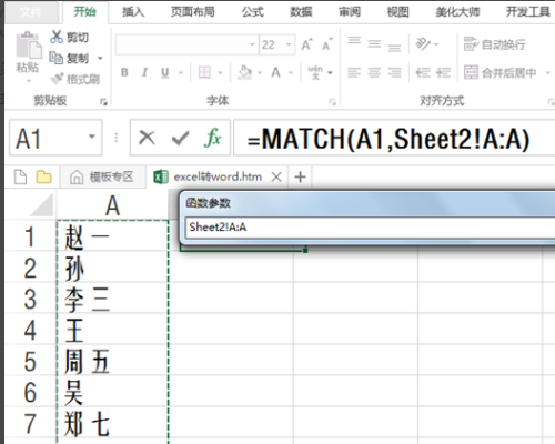 如果 match_type 为 1,函数 MATCH 查找小于或等于 lookup_value 的最大数值。Lookup_array