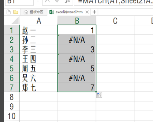 如果函数 MATCH 查找不成功,则返回错误值 #N/A。