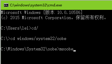 四、然后在oobe文件夹的目录下输入“msoobe”回车即可。