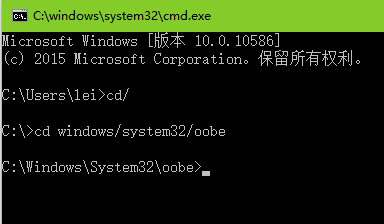 三、再输入“cd windows/system32/oobe”打开oobe文件夹。