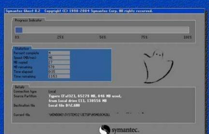 4).U盘启动并重装系统:插入U盘启动电脑,进入U盘启动界面之后,选择“将系统克隆安装到C区”,回车确定后按提示操作,电脑会自动运行GHOST软件将下载来的GHO文件克隆安装到C区,整个过程基本无需人工干预,直到最后进入系统桌面。