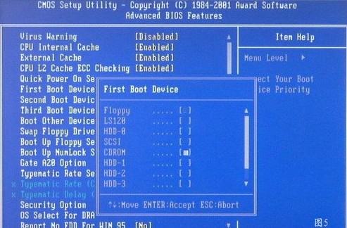 4、在那个圈圈的地方按回车进入,选择下图所示的然后按光标选择CDROM,按回车确认。