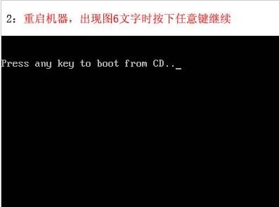 6、电脑将重启后展示上面的界面,把XP光盘放到光驱中。