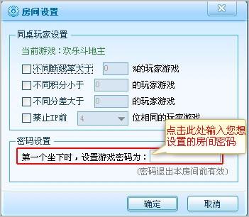 刚进入游戏厅`在右上方点设置。设置第一个做下设置密码。这样`当房间一个人都没时``你第一个做下`就会设置成你所设置的密码。。。相关文章