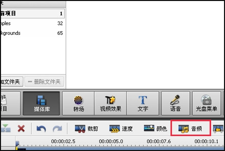 2、接下来就需要点击打开工具栏中一个名为“音频”设置选项。