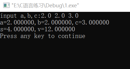 printf("s=%f,v=%f\n",s,v);