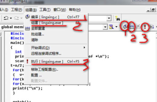 2、完成以后,点击编译后点击组建,然后点击执行。
