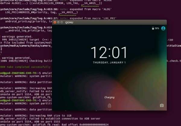 如果你是在编译完后立刻运行虚拟机,由于我们之前已经执行过source及lunch命令了,因此现在你只需要执行命令就可以运行虚拟机: