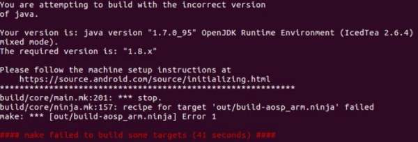 如果你认真看了构建环境的的要求,那么这个错误是可以避免的.当然,这个问题也很容易解决:安装openjdk 8,别忘了使用sudo update-alternative命令切换jdk版本.