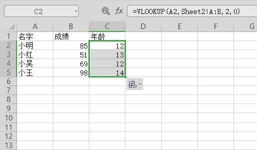 2、此图为表格2的内容,要把表格2中的年龄给填充到表格1。