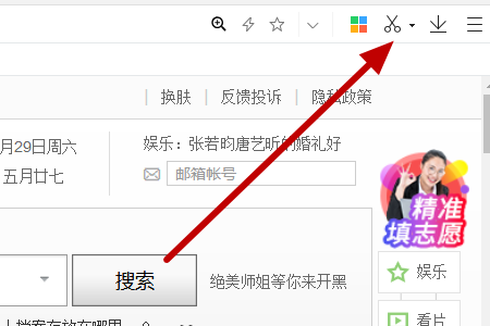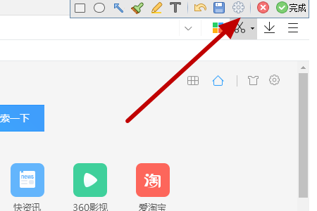 在新版360浏览器右上角部分有一个剪刀图标,这个就是截图工具。