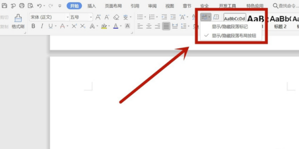 3、点击显示/隐藏段落标记,直至显示/隐藏段落标记前显示√符号。