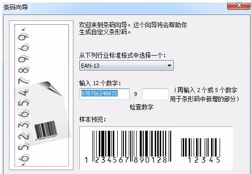 2、CorelDRAW 新建,编辑,插入条形码,选择EAN-13。输出eps。输入条码的前12位,最后一位是校验码,对比你得到的书号就能知道书号是否合乎标准了。其他选项都选择默认,那个右下角小箭头是“显示静区标记”。
