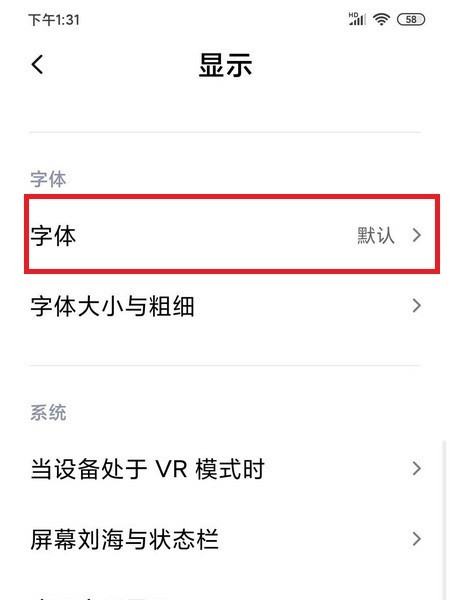 第三步:在显示列表中,点击字体后面的向右箭头。